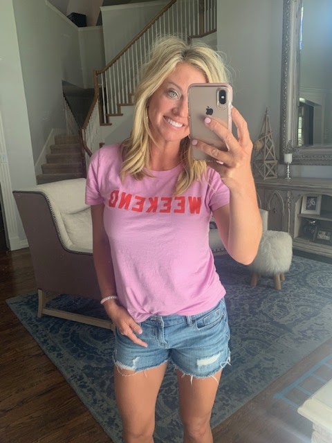 This “Weekend” tee was perfect for a Sunday afternoon {all sold out but from JCrew} and once again, it’s those shorts.