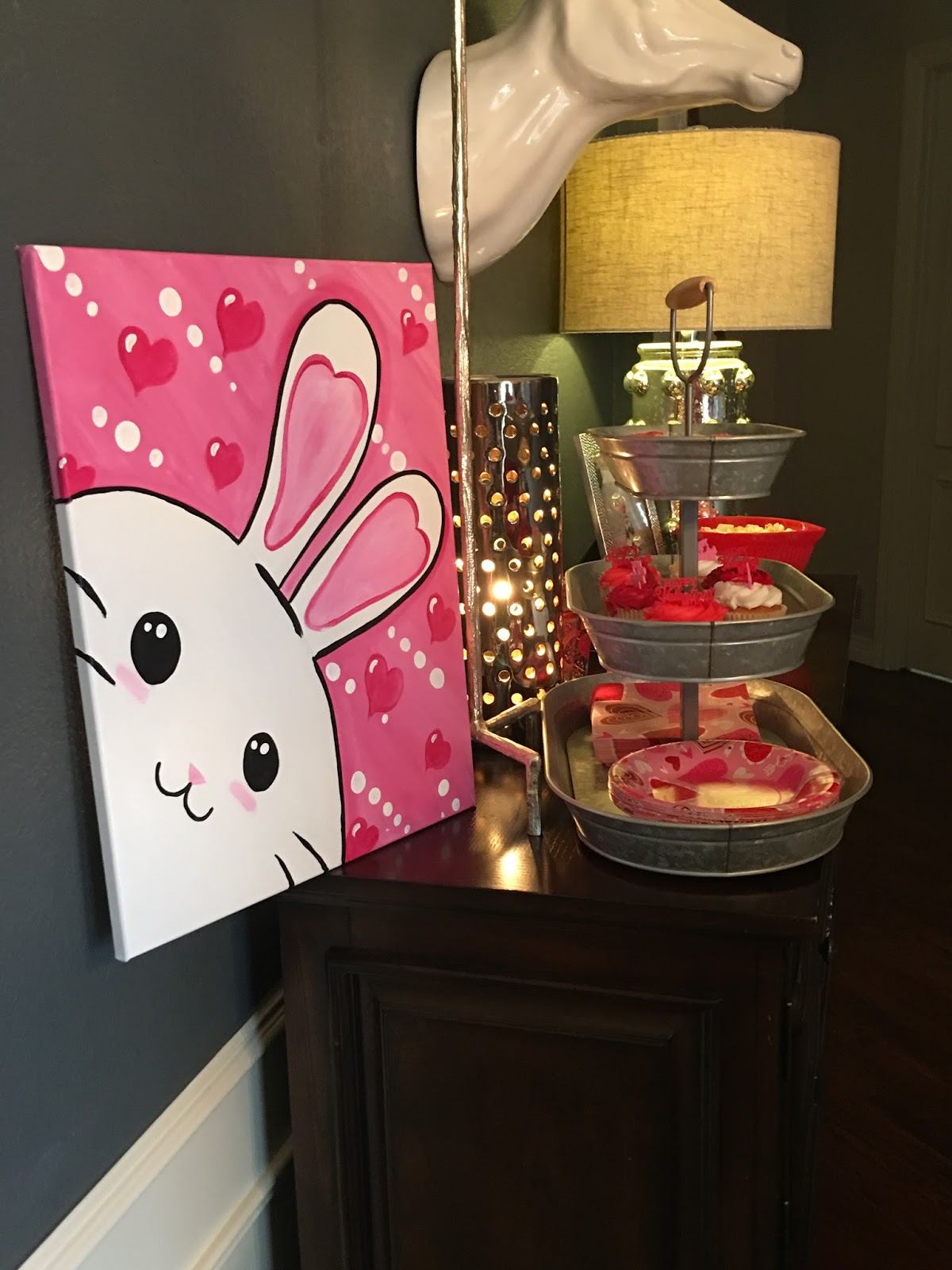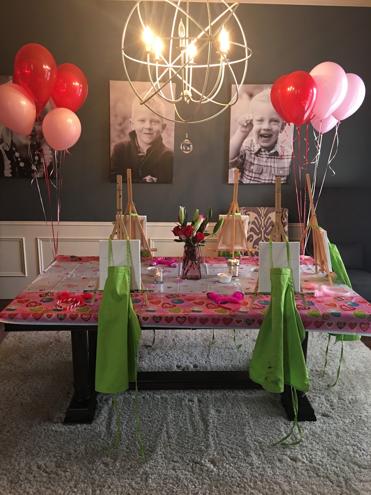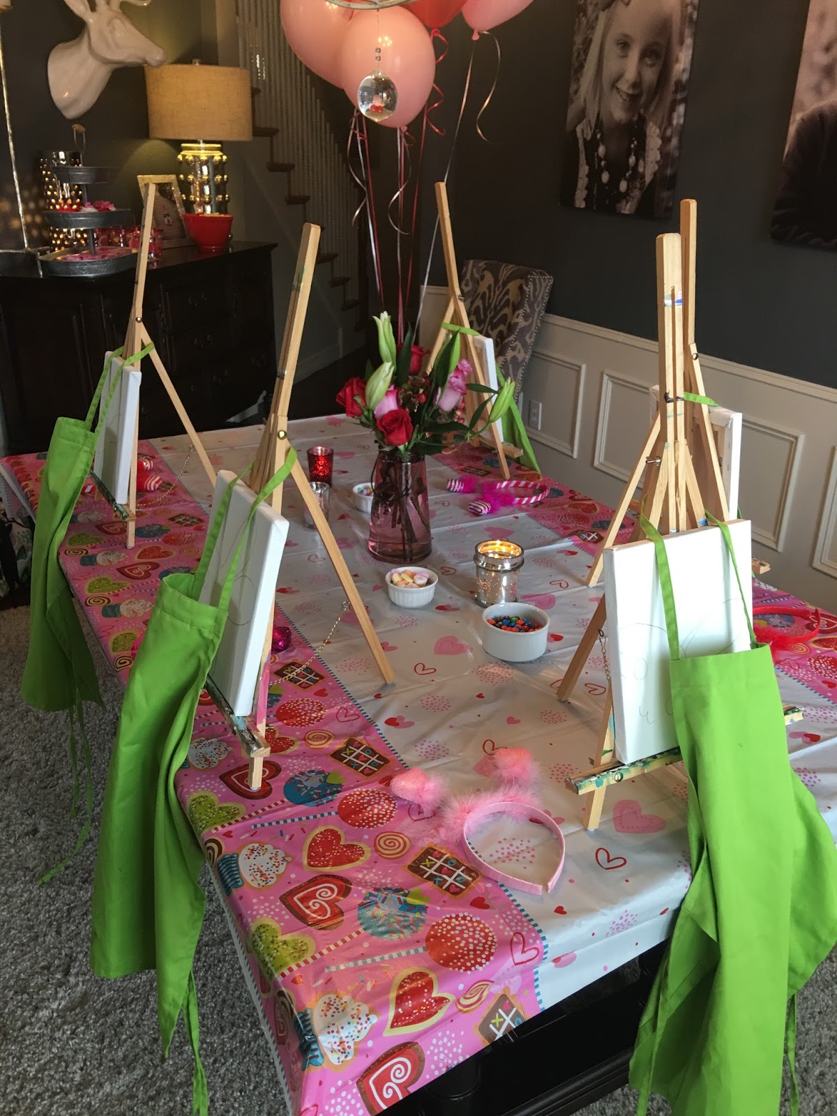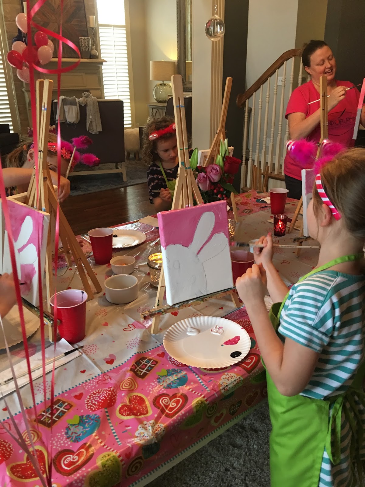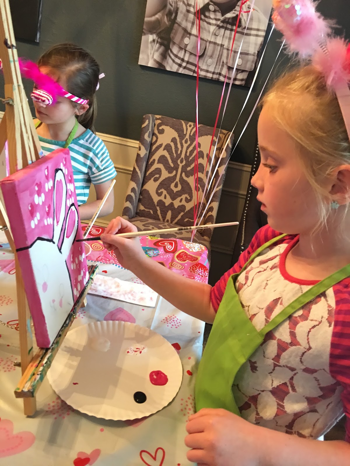 Shannon from Stand Up and Paint came to set up the art supplies. We chose a cute little Easter/Valentine canvas for the girls to paint.