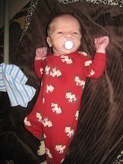 Look who’s almost outgrown his newborn clothes!! So handsome in his Christmas pajamas!