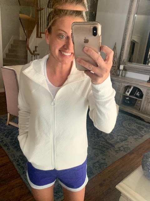I wore this white jacket with some workout clothes on Friday last week when we woke up to chilly temps! This jacket was great and is on sale now.