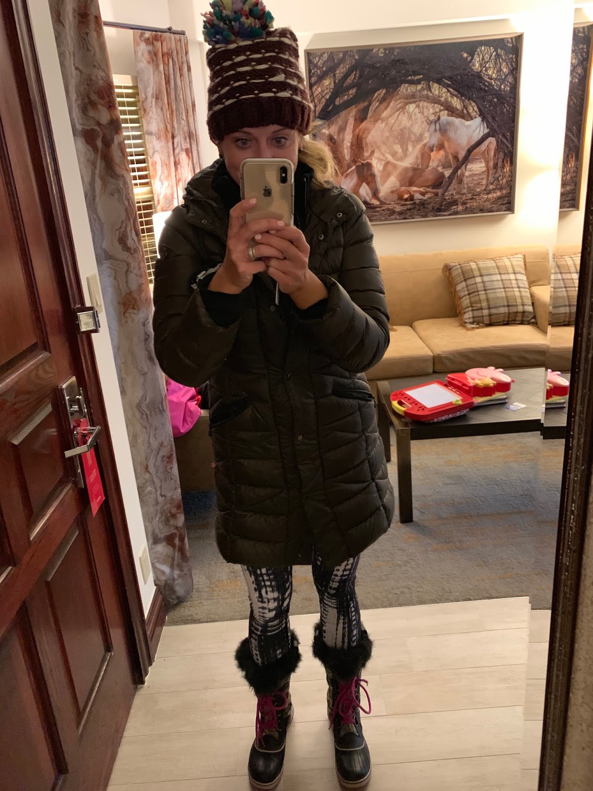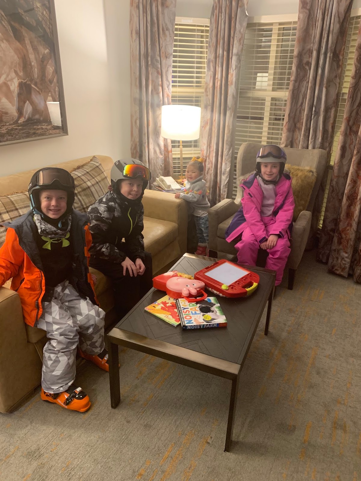 We used a babysitting agency for Britt two days so I could ski with everyone while we were there. I’ve gotta be honest-I was a little nervous about this, but I was really happy with the service. We had two different sitters and both were great, they sent me pictures and texts throughout the day, and seemed to be really good with her. I had packed some toys knowing she’d be with a sitter so they played in the room, walked around outside, and even played on a little playground.