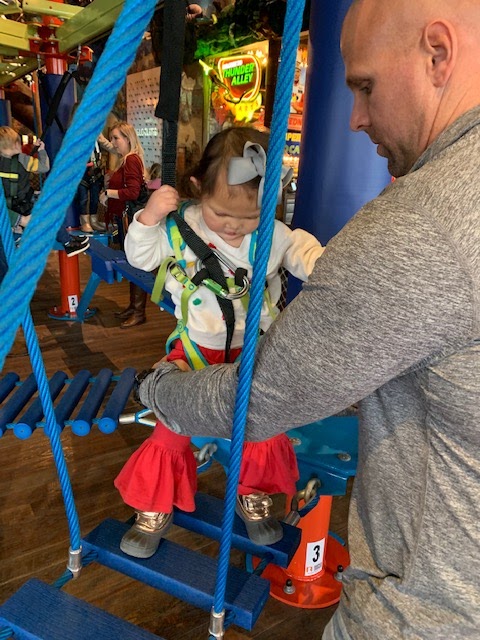 That looked like so much fun!! I laughed so hard when you said Tab wanted to put Britty into a little Ninja Warrior thing! And the pic of her hugging the boy helping her get out of her harness? SO ADORABLE!!!