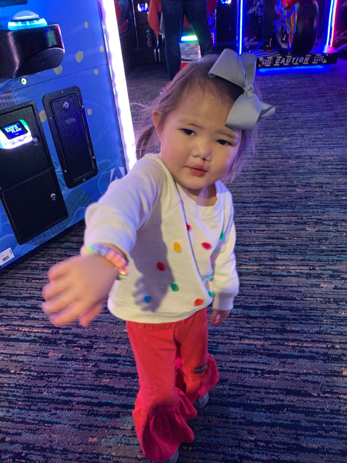 Tab gave each of them an arcade card with some money to play games. Well, Nixon got sucked into that claw game. You know the one that really does look like you’re going to get that football but it falls out of the little robot’s clutches at the last second? He fell victim to that game and spent ALL HIS ARCADE MONEY in a crazy amount of seconds. He quickly became the “what can they pay for that I can still participate in spotter” throughout the arcade.
