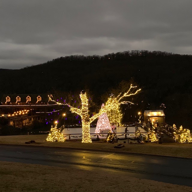 Since it was New Year’s Eve, I made us reservations at Osage Restaurant in Top of the Rock when I booked our rooms. Tab paused to take this picture while driving to the golf course area. Isn’t that gorgeous?