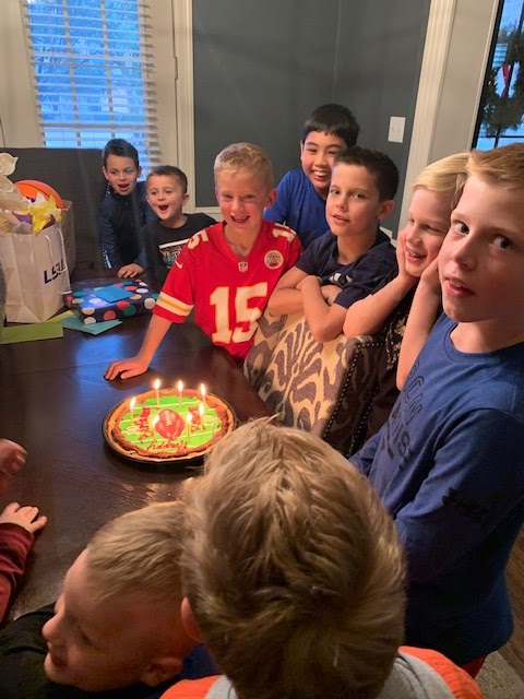I kept it simple. REAL SIMPLE. Pizza, cookie cake, drinks, and a few balloons…There was a group of balloons on the mailbox and this happened before the party even officially began.