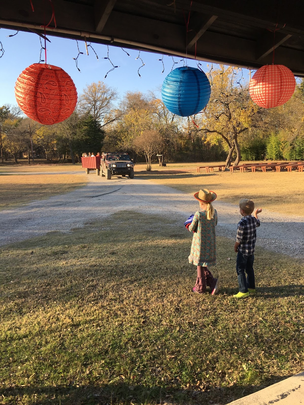The guests all parked in a parking lot closer to the road and this trailer brought they back to the party wagon-ride-style.
