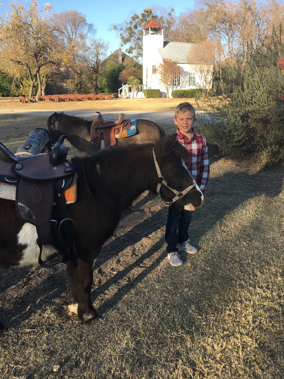 I’m gonna be honest from the road the location doesn’t really look like much, but when you get back to the western town area there is so much space for kiddos to run free, a pavilion with tables, we had pony rides (which Bowen informed me the day of the party were a bit too baby for him-Eye Roll from Mom!), a bounce house, and more.
