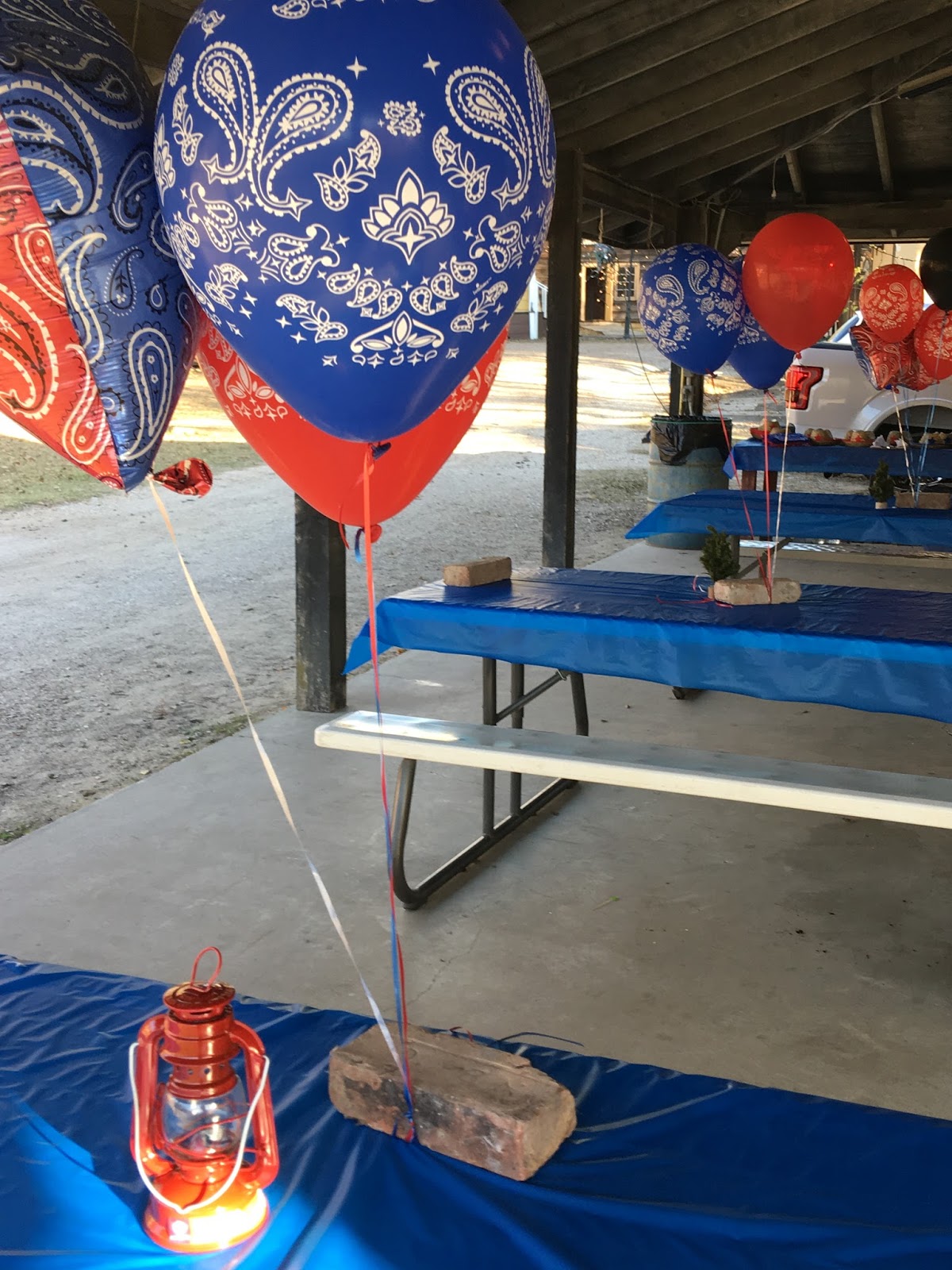 Thank goodness for the bricks holding down the balloons AND the table cloths.