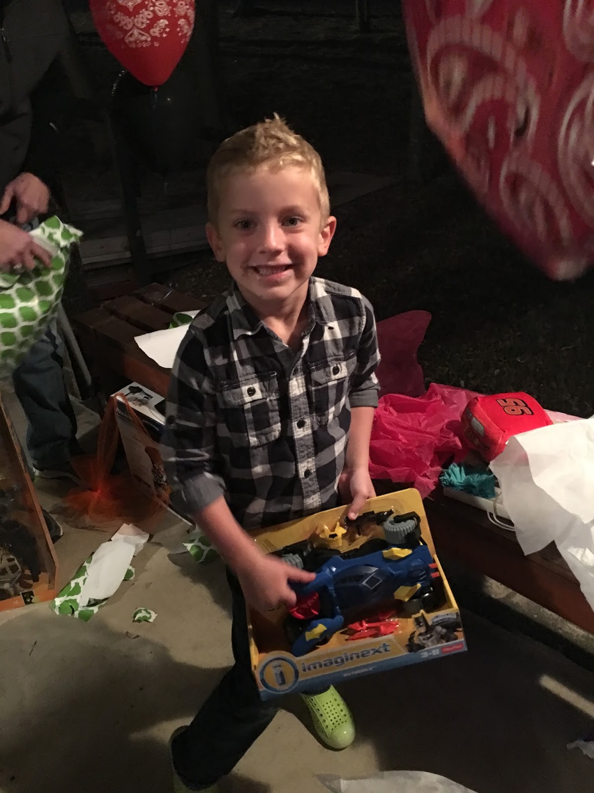 While we waited for the wagon ride to pick everyone up, this guy opened presents.