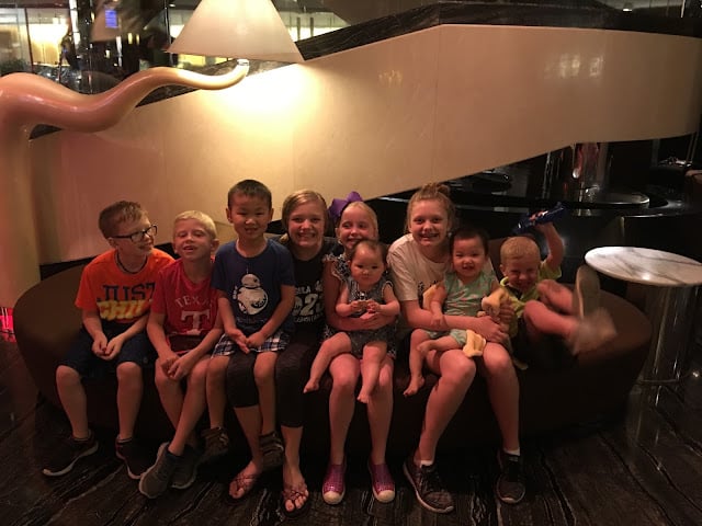 Wednesday morning we said goodbye to our guide (totally missed a picture with her) and loaded up in our big van along with the W family to head to Hong Kong. We had a one night stay there before we all flew out on Thursday. The drive from Guanghzo to Hong Kong was about three hours. When we crossed over to Hong Kong we had to split up into three different vans…only certain cars were authorized to drive in Hong Kong. It was pouring down rain during the car switcharoo and we had to have passports for everyone in each van. Hard to describe but imagine all the chaos! haha!