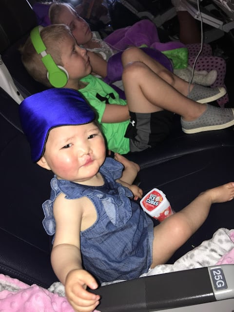 On this flight we had all six seats across in the same row and thankfully, no one got sick.