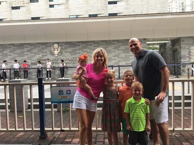 On Monday morning we had an early morning appointment at the U.S. Consolate to get all of Britt’s paperwork finalized. This is where we raised our hand and swore to love this girl forever. Phones weren’t allowed in so we took one quick picture before we walked inside.