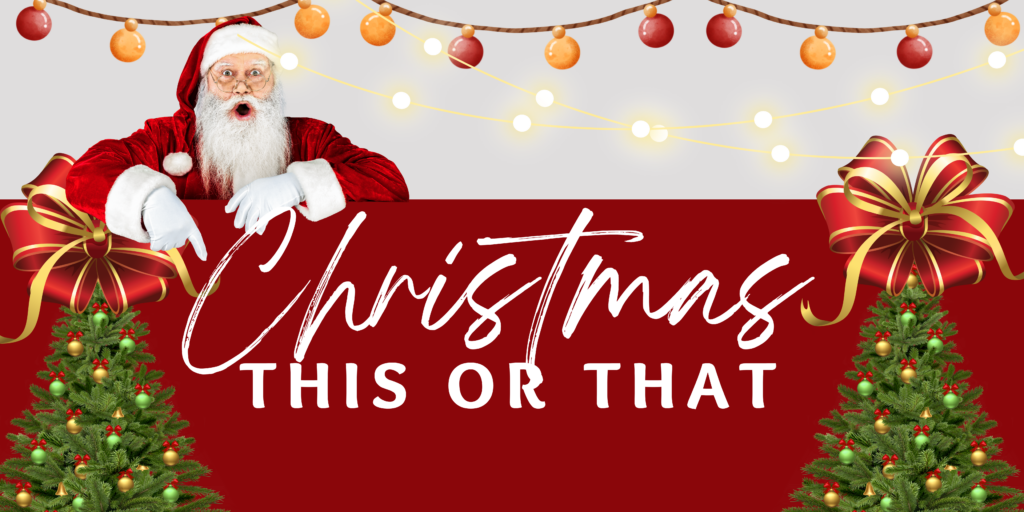 Happy Wednesday, Friends! I don’t know about you but it’s time to get FESTIVE around here! I’ve been making my Christmas list and checking it throughout the day to make sure all the gifts arrive in time for Christmas. We have matching Christmas pajamas our elf, Sparky, is bringing next week. We’ve made Red Velvet Whoopie Pies, delivered neighbor gifts, and are a week into our Advent Calendars. We’re squeezing all the holly jolly-ness we can into a house where we’re still unpacking. In honor of all the merry excitement, I found a really festive Christmas This or That I thought would be fun!