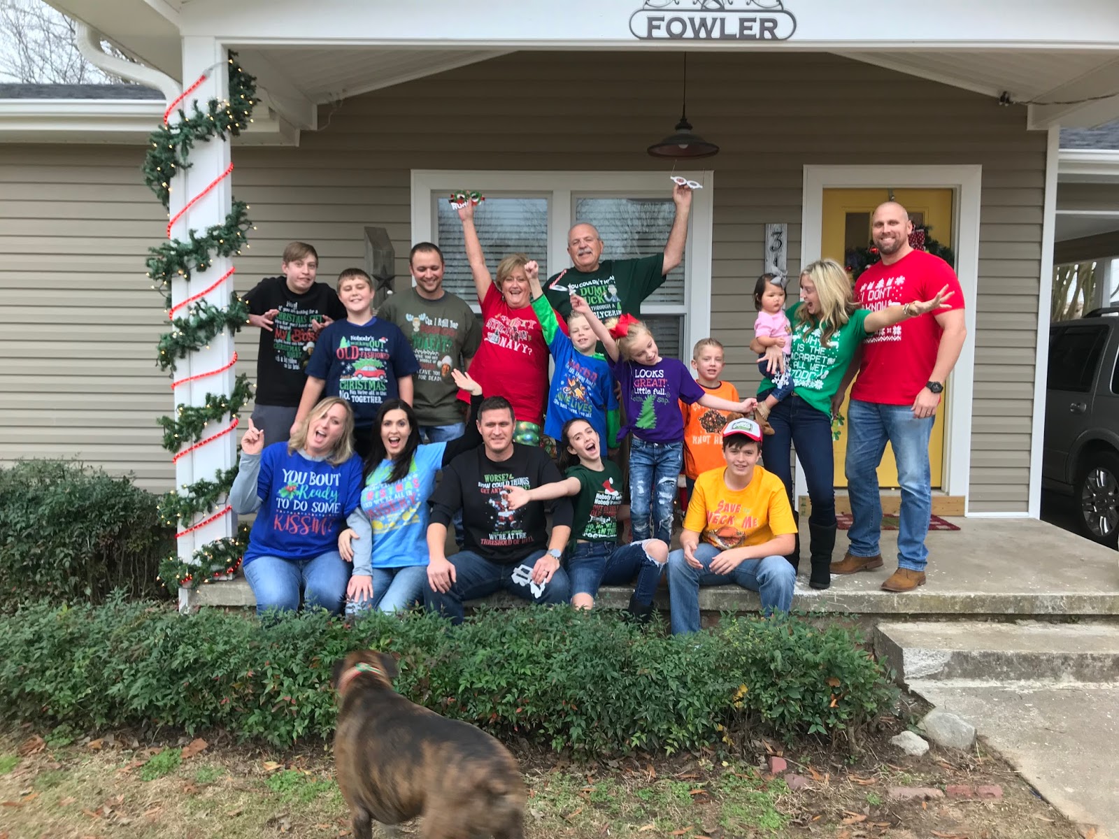 Saturday, the 23rd, we made our way to East Texas for a day trip to visit Tab’s mom’s side of the family. She surprised us all with National Lampoon’s Christmas Vacation t-shirts. Every shirt had a different saying or quote from the movie. Here we are in our Christmas Vacation finest.