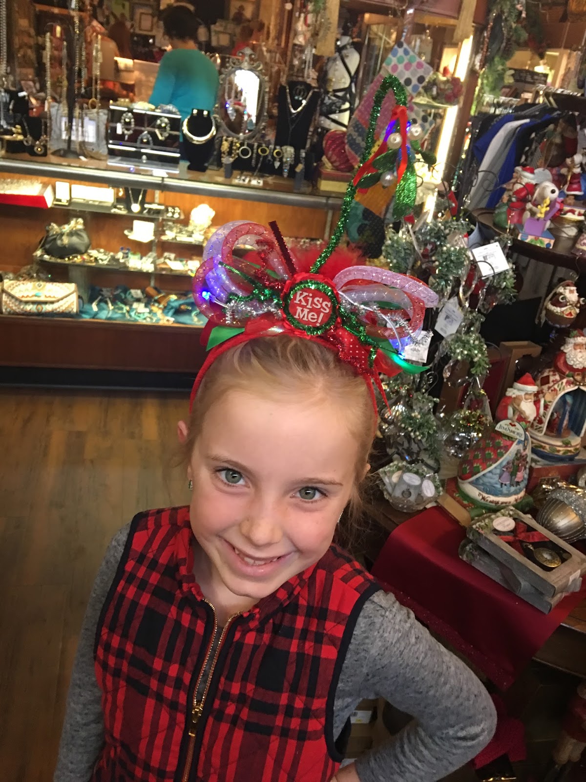 The girls did a little shopping on Friday before we left. She was channeling her inner-Cindy Lou with this headband. Right?