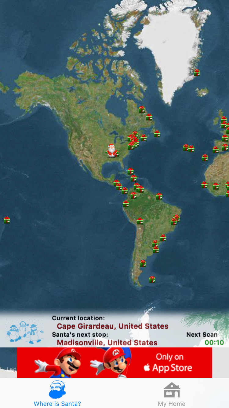 Tab and I were up for hours getting everything assembled. Being an elf is TOUGH! When we headed to bed, we just happened to see Santa was in Cape Girardeau (the town in Missouri where lots of my family lives).