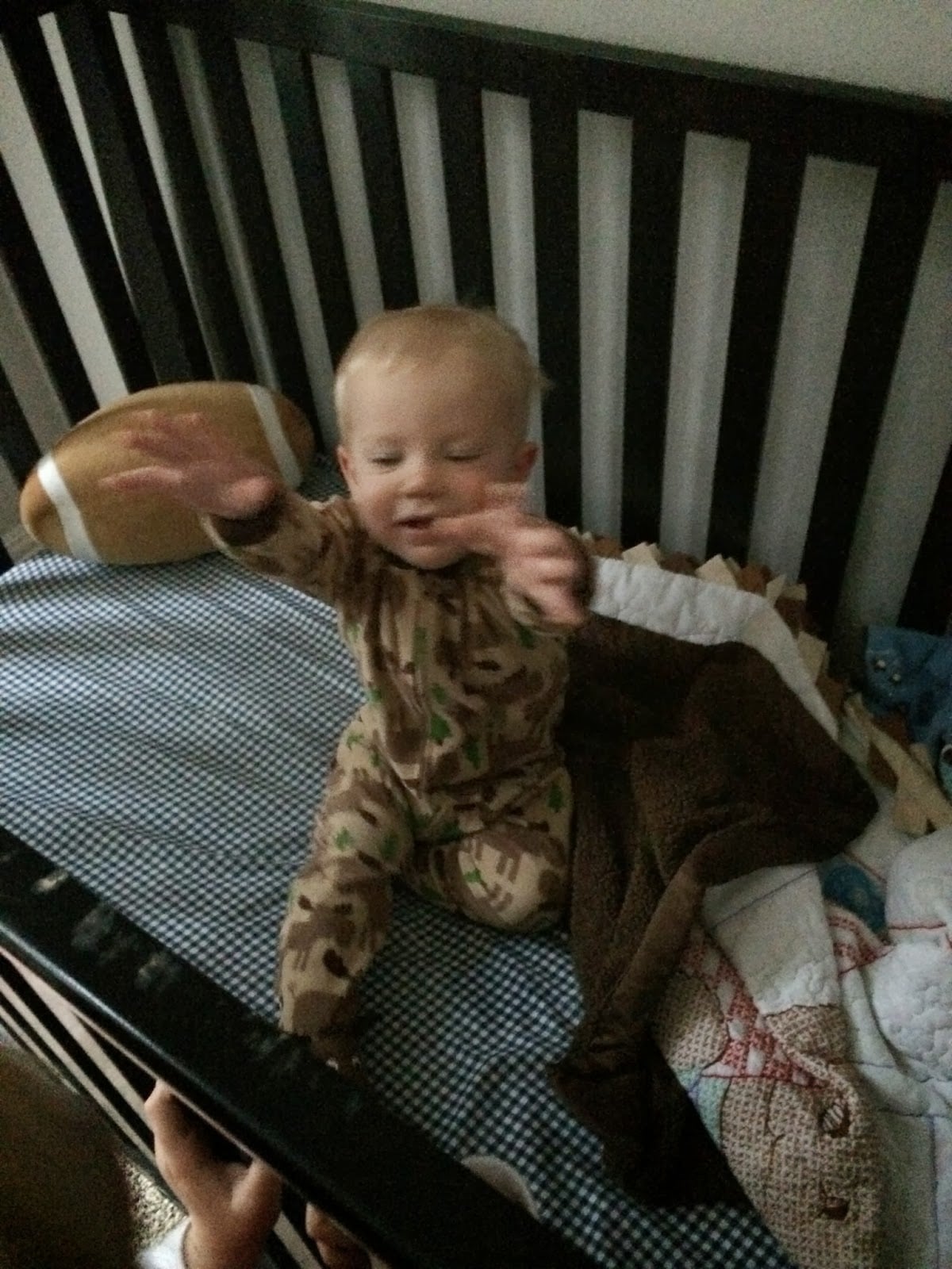 7:28…he woke up and was ready to get out. He’s usually the last one awake so usually everyone goes in to get him.
