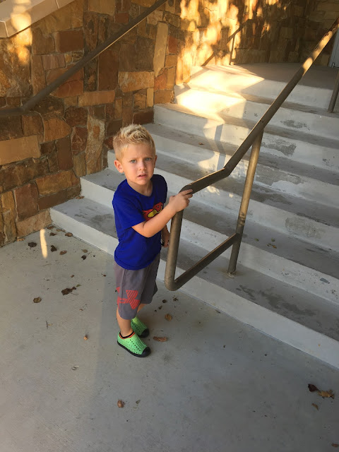 Bowen and I had to run a few errands. Errand number one was a quick errand for the flag football team.