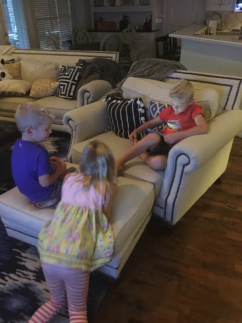 They were all three squeezing in a few more minutes of IPads and Kindles before shower time. Then they showered, we laid out clothes for the next day, tucked everyone in, and Tab and I high fived. 😉