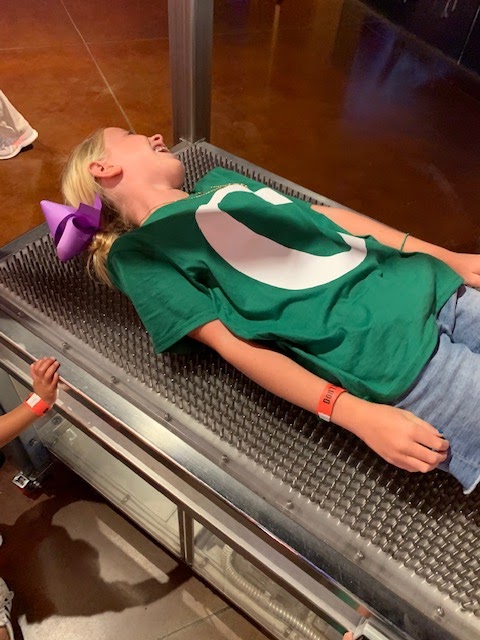 Laying on the bed of nails was a hit!