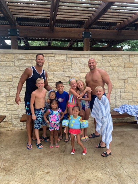 Nixon was surprised when he spotted the Texas Rangers’ manager, Chris Woodward, in the pool. I’d like to add that the Woodward family was so sweet to Nixon, who happened to be wearing his Gallo jersey.