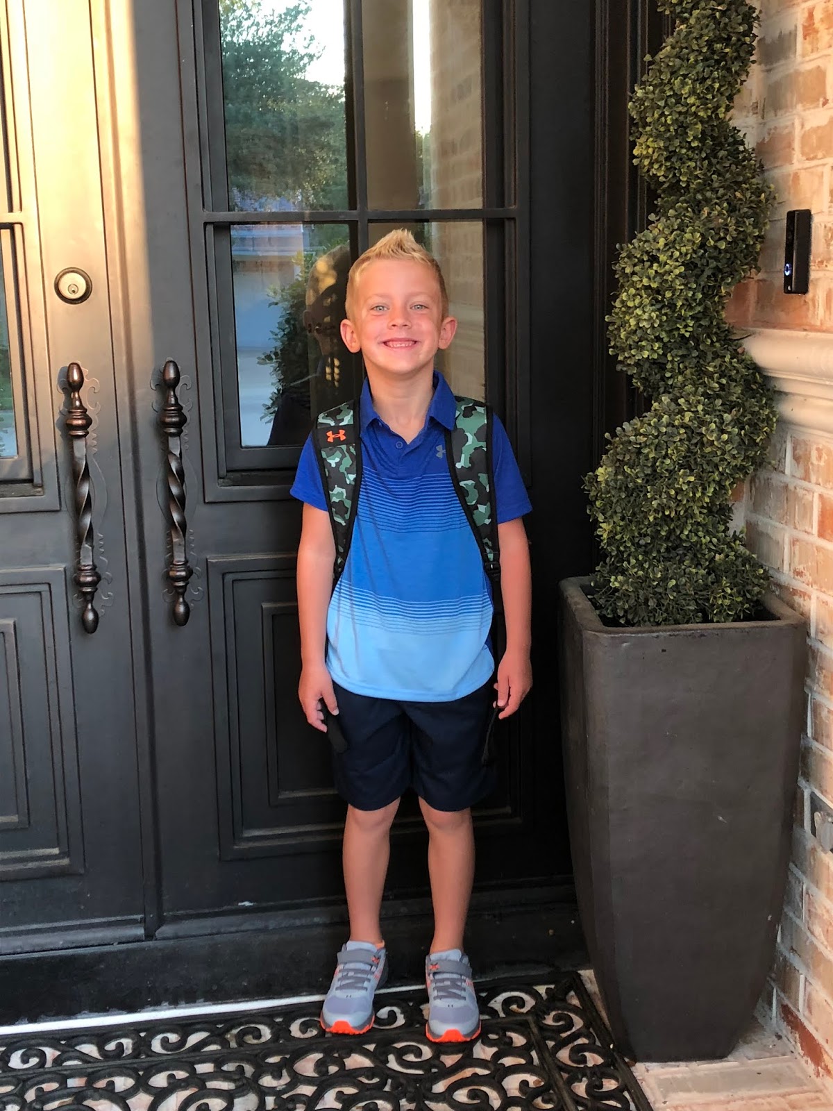 Next year, we need to head outside a little earlier…our front door picture got all messed up by the sun! I’d say right about this time they were half excited and half nervous.