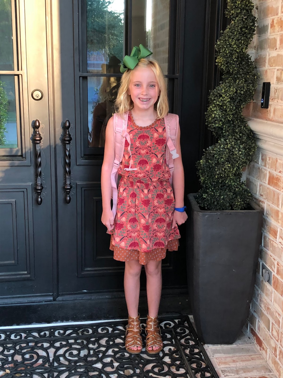 It’s a first day of school tradition to decorate the front door. This started when Ebby Lee went to kindergarten and I asked you guys for fun traditions to start. Now, my kiddos all know it’s gonna happen AND they look forward to it.