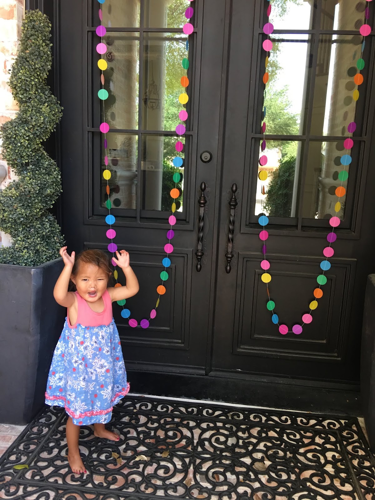 I found these sets of garland on Amazon and it was SO much easier than crepe paper! I used less than half so next door my front door situation is ready to go as well.