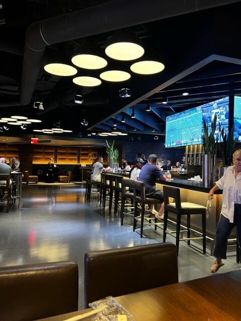 We had access to the Stadium Club Restaurant which was a really nice restaurant with two huge bars on each side and buffet style food set up all throughout the space from fancy mac and cheese to sliders to nachos to sushi to dessert they had it all. We had a little snack session before making our way to our seats to agree the potato skins were HANDS DOWN the best!