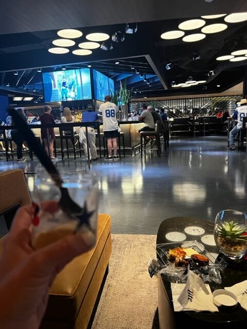 She realized the Bengals were coming to Dallas so started asking Tab for tickets way back in the summer. Tab totally delivered and got the two of us some great seats along with some club access that had me texting him, “I’m not sure we’ll ever be able to watch a game without this again!”. hahaha! While Ebby Lee and I were at the Cowboys/Bengals game, Tab was in Vegas for the Raiders/Cardinals game, but he managed to somehow spoil us big time in Cowboys Stadium.