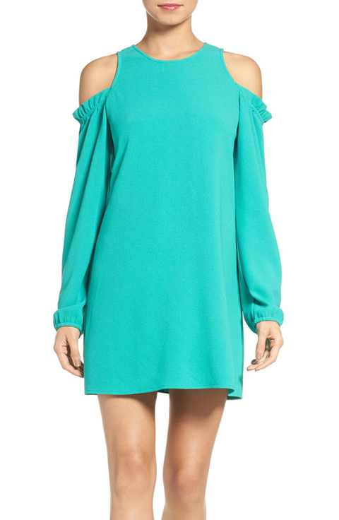 I ordered this dress a while back and kind of forgot it was hanging in my closet. I love the color (definitely more green than this picture), the cold shoulder is just a little extra fun, and the length is perfect. I wore it to church on Sunday and completely forgot to take a picture. It was super cute paired with my leopard heels.