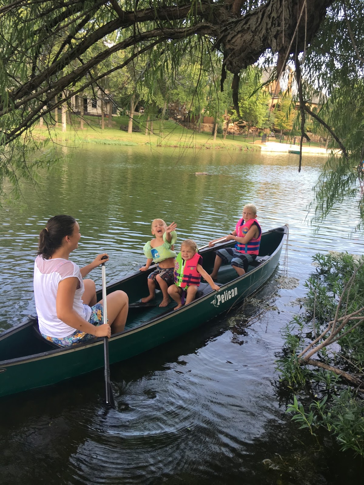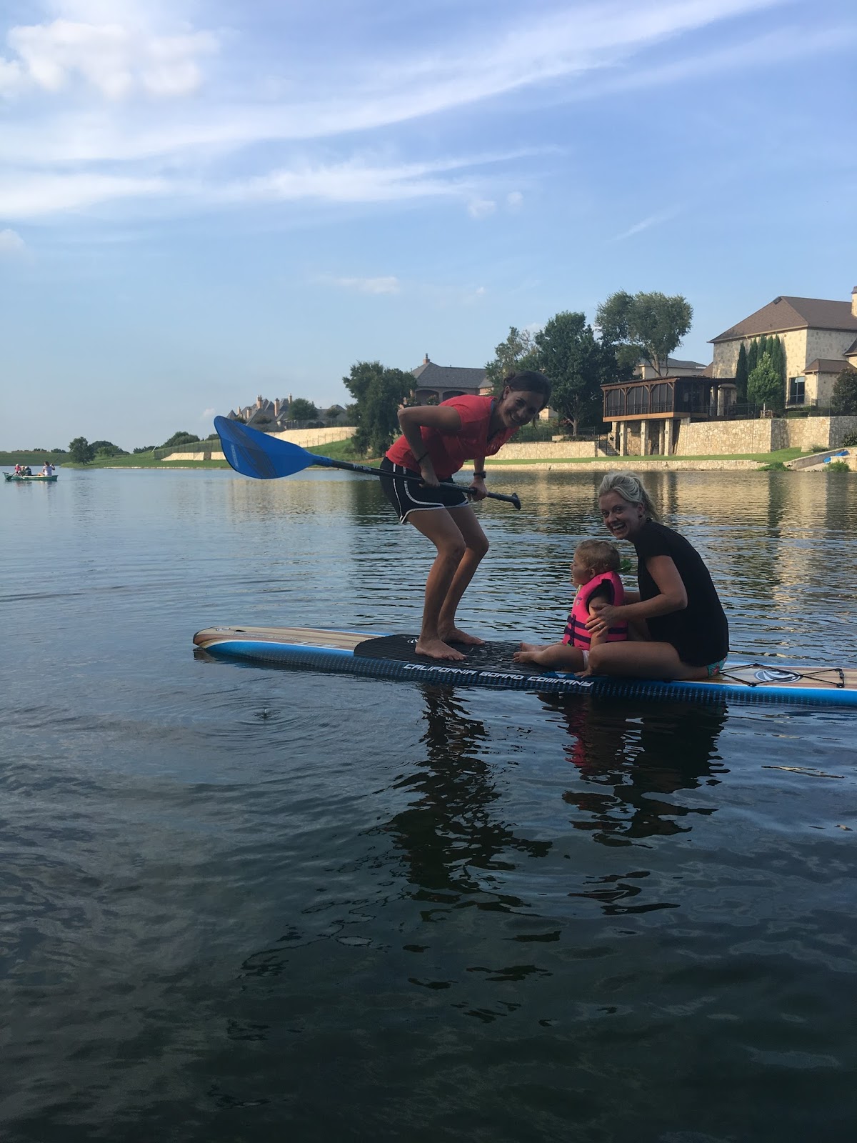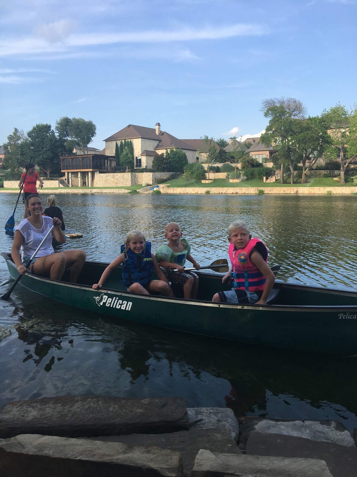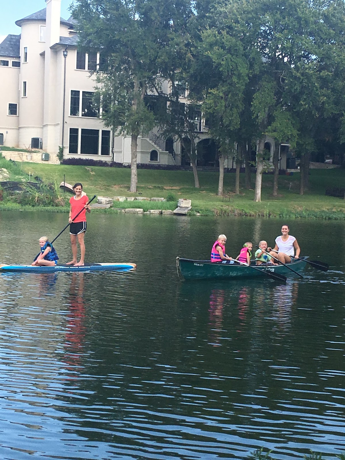 We have some really amazing neighbors. I mean really-they are awesome!! We hung out in their backyard on Friday night while eating pizza, swimming, canoeing, and paddle boarding. GREAT Friday night in my book!