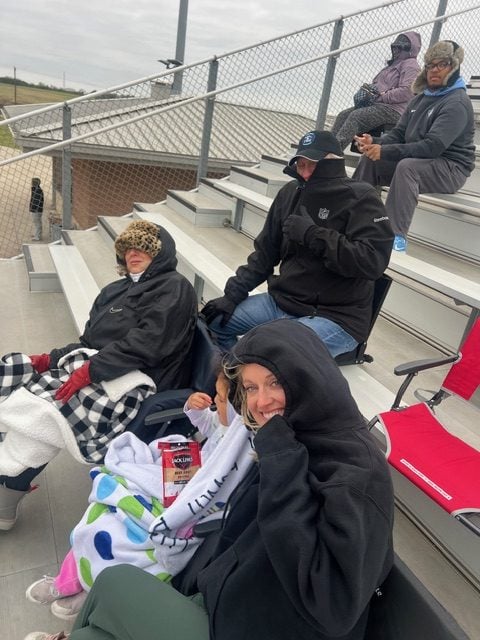 Bowen is playing on a 7 on 7 team every week. Watching football in the country on Friday nights is a FAVORITE but check out the weather….
