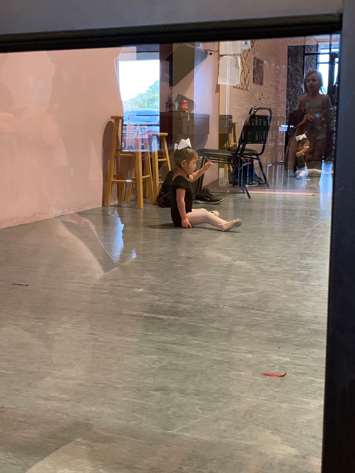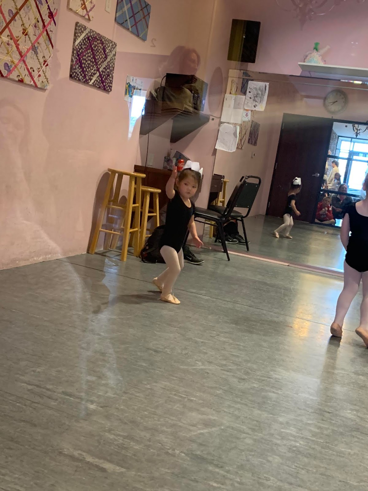 Halfway through class she came out to switch from ballet shoes to tap shoes. She was SO excited and so eager to go right back in to dance some more! No tears AGAIN!