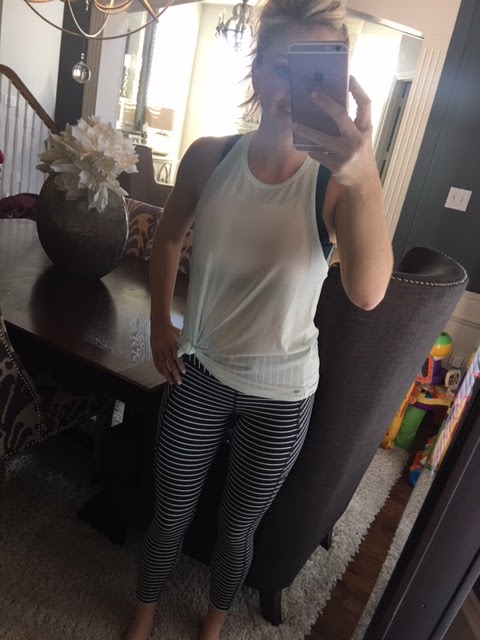 I’m probably like the majority of you guys…trying my best to start 2018 being more healthy and let me tell you new workout clothes are one way to get me motivated. I grabbed these pants, this bra, and this top last week at the mall. I had some Christmas money burning a hole in my pocket. 😉 I wore it earlier this week all day, did an at-home workout, and ran some errands. I wore it tied because the top is a little longer but when I go to the gym I probably won’t tie it.