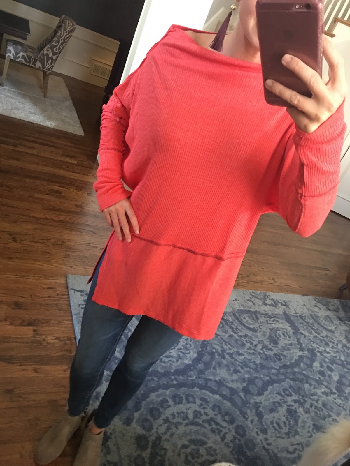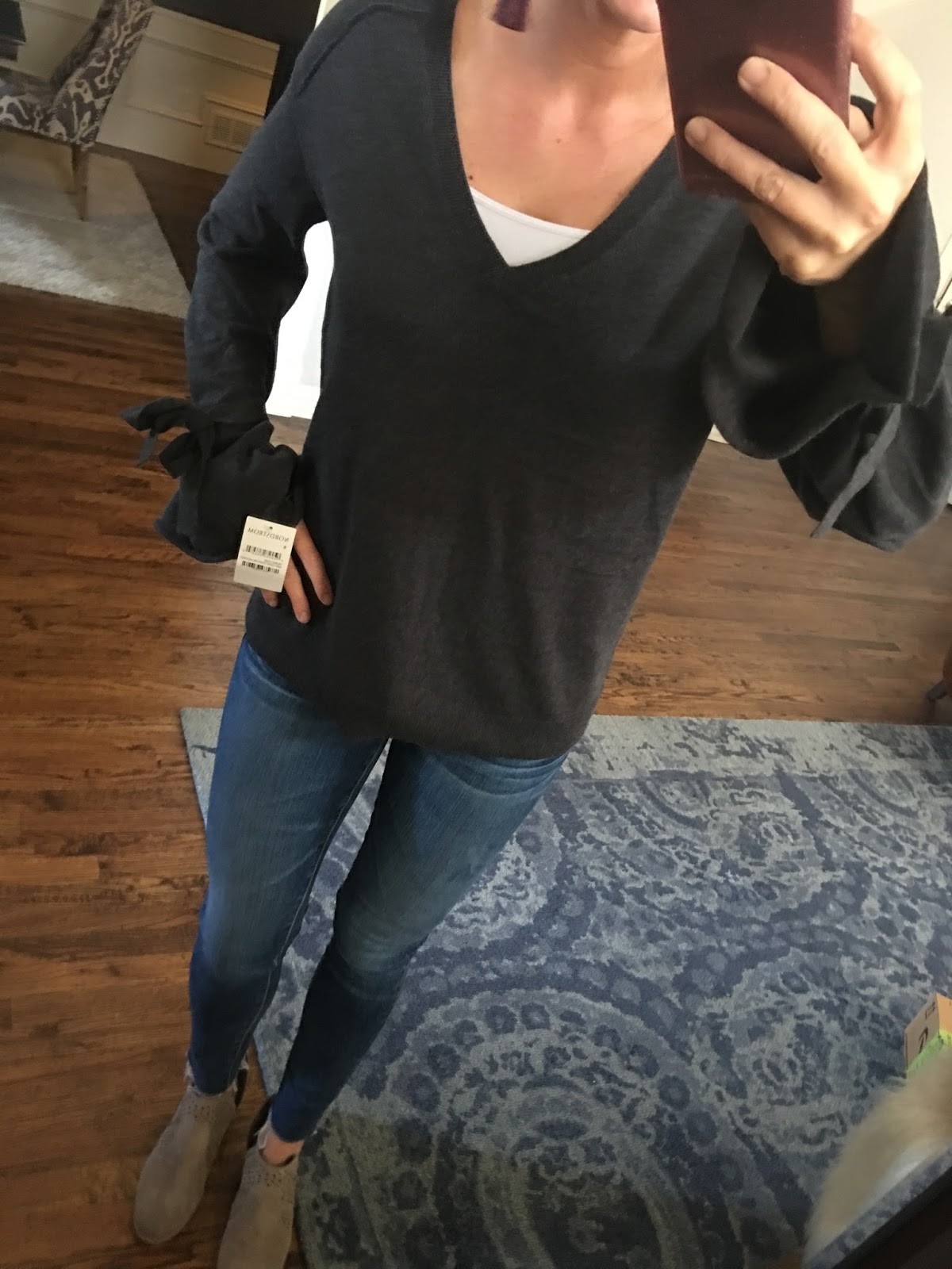 I bought this tie bell sweater back in the fall and now it’s 40% off. The grey is sold out, but it comes in black and a cute lilac.