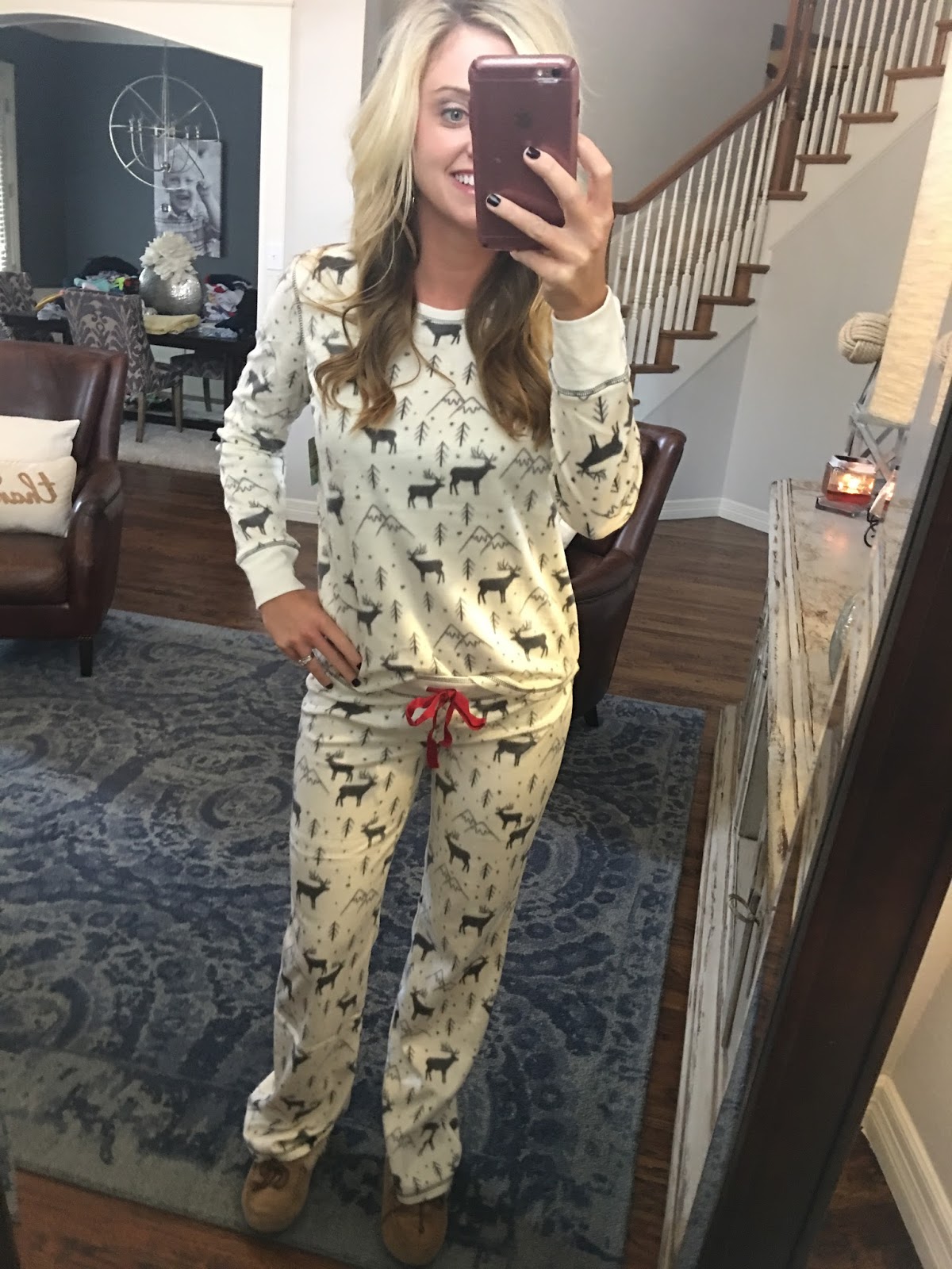 These cozy fleece pajamas are on major sale and come in a variety of other colors-stripes, polka dots, etc. that are just winter.