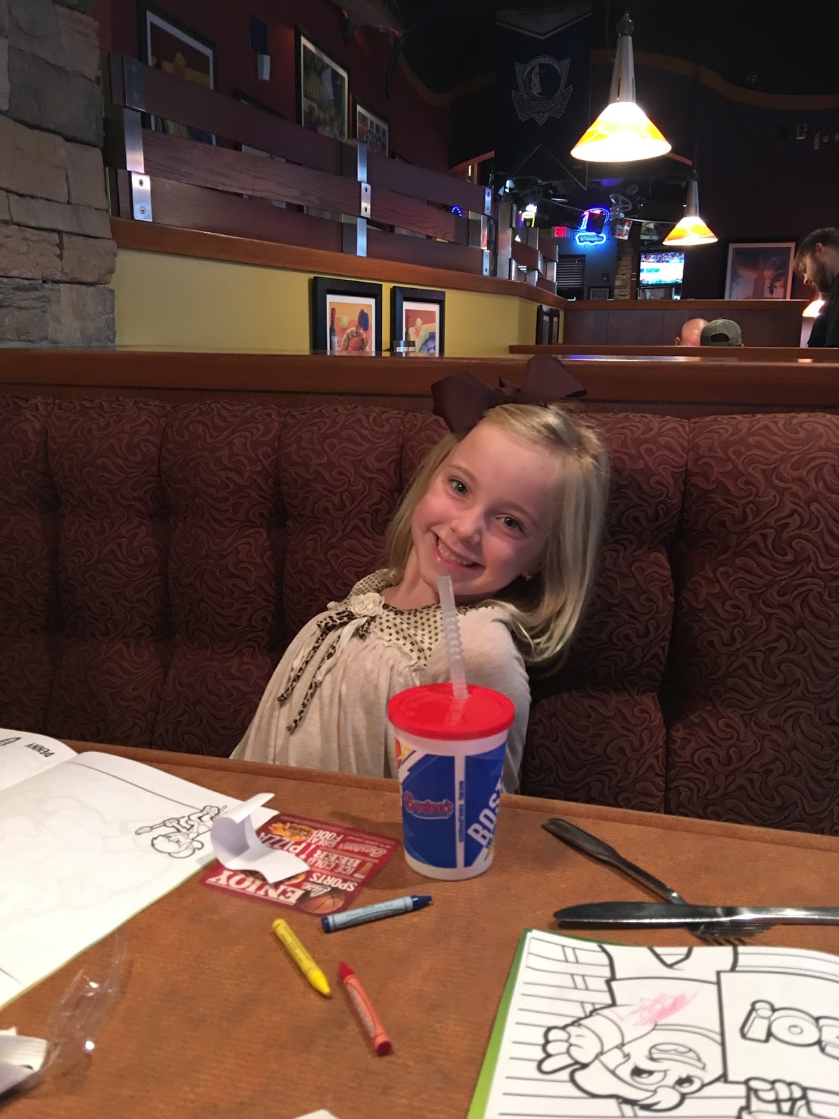 We’ve had our fair share of pizza this week. Tab is the healthiest eater in our house, so with him gone we’ve enjoyed our favorites! haha! She’s smiling because pizza was for lunch. 🙂