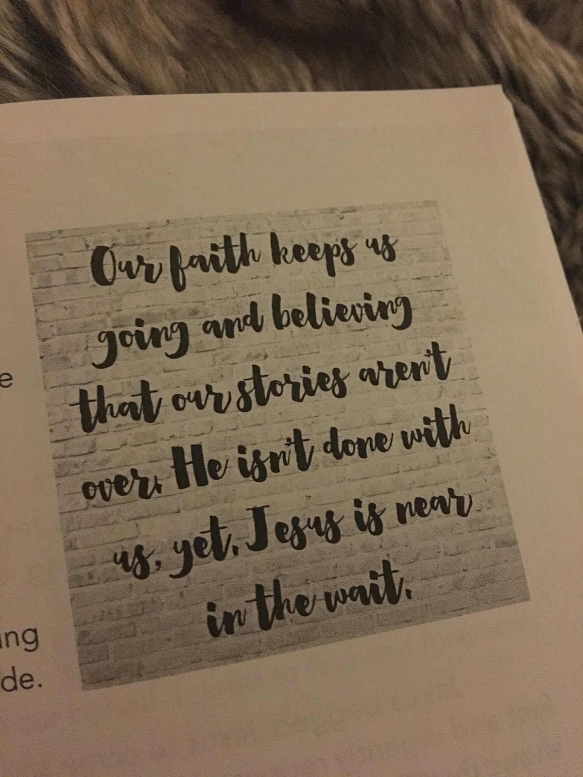 The bible study I’m doing was so good yesterday. It was all about waiting and how everyone during one stage or another (usually) experiences a wait. Waiting for a new job. Waiting to get pregnant. Waiting to get into the program. Waiting of some kind.