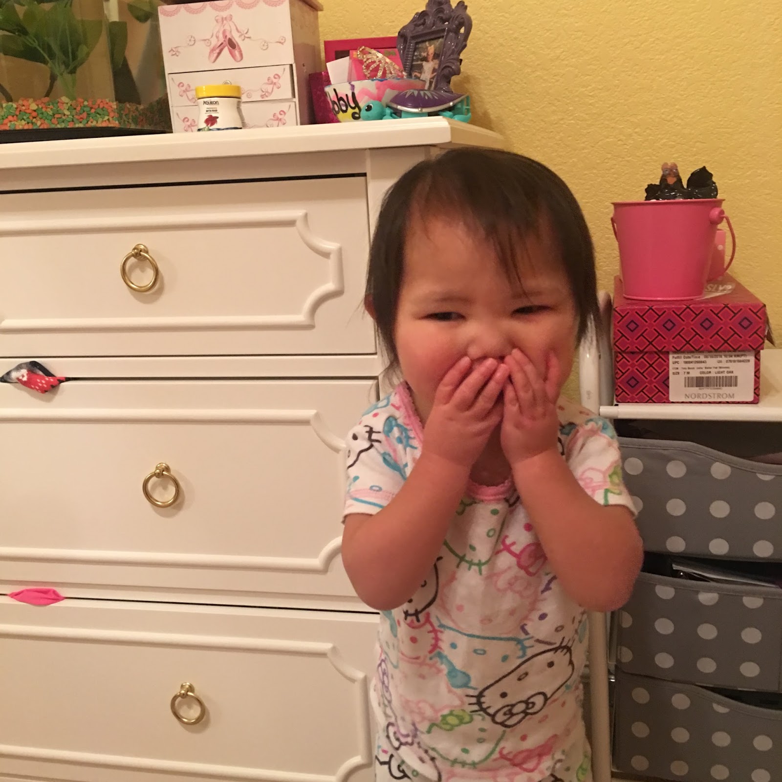 On Wednesday, Britt took the shortest nap known to man and then thought it was time to go about her day. This girl loves to color so I set her up in the floor beside me while I worked at my desk. I glanced down and had to laugh. She’s got her sippy cup, goldfish, and crayons-but she’s laying there like she’s a big kid coloring!