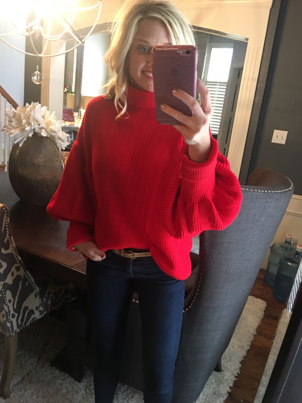 I tried to only focus on sweaters you could wear before AND after Christmas. This red sweater caught my eye and I just couldn’t look away. The sleeves on this top are fun. They bring the party, that’s for sure. I ordered an “8” in this one as well. I think I could have ordered my normal “4” and been fine, but again, I like the oversize look as long as I pair it with skinny jeans to give some balance. The color is gorgeous for Christmas. If you’ve been looking for a fun, festive holiday sweater, look no further.