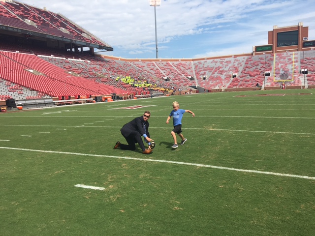 This past weekend was the first big weekend of college football. Tab was at the University of Oklahoma, which happens to be a short drive from us. He decided to take Nixon to tag along for the weekend and Nix had a BLAST!