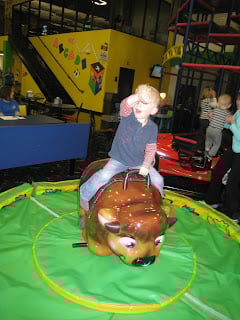 Friday we met Ms. Sarah and Peyton at Going Bonkers for some play time. My kiddos were in heaven! Check out my cowboy on the bull…ha!