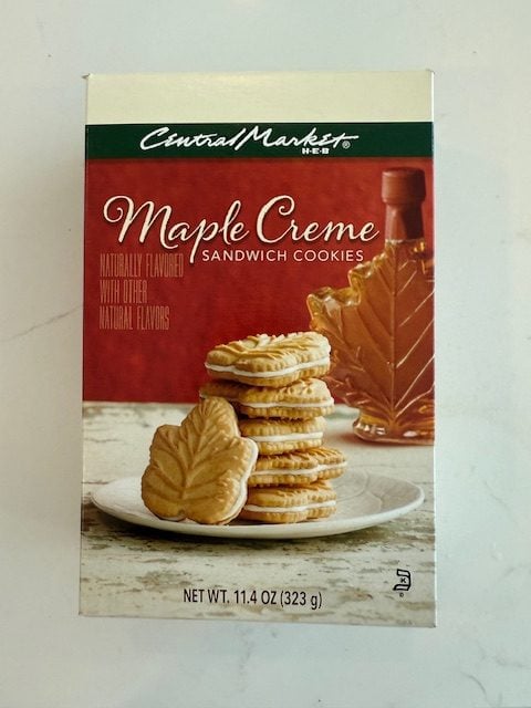 First things first, I got caught in the “fall” section of HEB online and ended up with some goodies. These Maple Creme Sandwich Cookies are absolutely delicious! I live for a vanilla sandwich cookie and these are some of the best I’ve ever had.