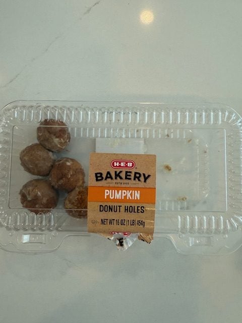 I added these to my online cart, groceries were delivered on Saturday, and this is the pic I took of the Pumpkin Donut Holes yesterday. They were almost completely gone {because they were delicious!}.