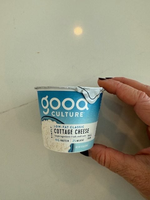 My VERY favorite Good Culture Cottage Cheese is always sold out, but I found it this week in these small one-serving containers. {If you live in McKinney and know what other grocery stores sell this cottage cheese, will you please share? Also, Sheaffer, I apologize for not dropping any off at your house.}