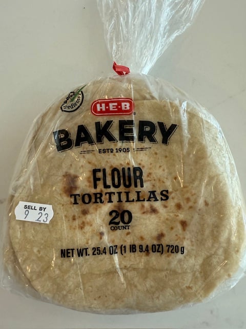 HEB is KNOWN for their HOMEMADE tortillas. They come in “butter” or regular. We like them both. They’re SO good!