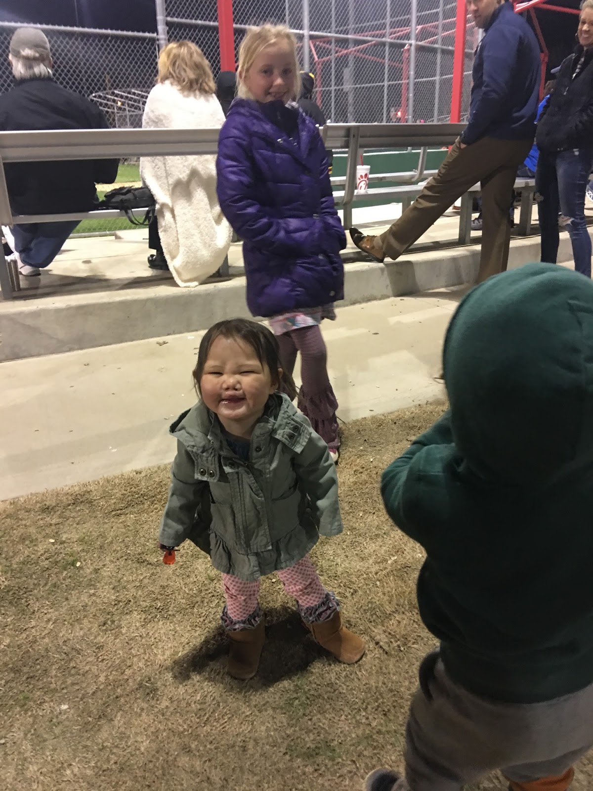 We’ve loved getting to watch Nixon play some baseball. Miss Britt is a trooper at baseball games. As long as she has a snack, this girl is GOOD! And her snack preference is popcorn.
