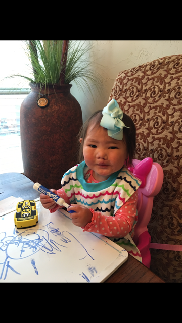 On this day, Britty was hanging out at M’s house coloring AND snacking on Cheetos. She was living the life!