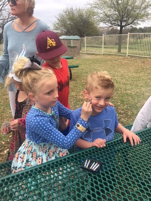 We recently attended the cutest little unicorn parties for two of our favorite little girls. Ebby Lee got asked to face paint and to be honest, I was a bit nervous. BUT…you guys I should have taken a picture of her unicorn. She has some face painting SKILLS! Bowen had asked for a sword.